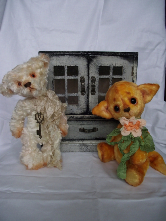 Игрушечный мир - животныевот доделала я сегодня двух этих друзей -не смотря на то, что они такие разные. они очень дружные. потому что родились в один день! сшиты из винтажного плюша. набиты опилочками и утяжелены мет. гранулятом, крепление шплинтовое, голова на двойном,глазки стекло, тонировка маслом