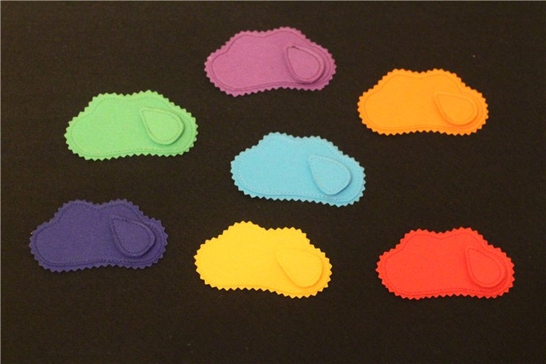 А если объединить идеи с вашими облаками (из 2 постов) и сшить много цветных капель и сделать шнуровочки, то получится , что дочка должна будет выбирать из кучки цв. капель необходимый цвет и нанизывать их на шнурок к подходящей по цвету тучки. Будут цветные дождики :)