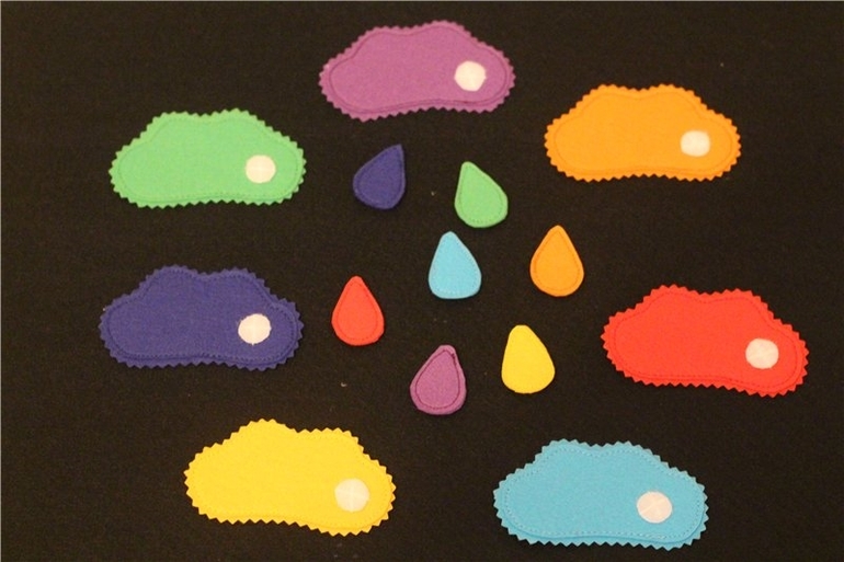 ФетрС появлением нашей малышки я каждый день "гоняюсь за идеями". Хочется, чтоб наша крошка росла здоровым и счастливым ребетёночком. Ну, а для счастья малышам, как известно, кроме мамочки и папочки нужно множество разнообразных игрушек. Вот и сшился у меня цветной дождик. Идея взята тут . Игра направлена на то, чтобы научить малышей узнавать и соотносить цвета.