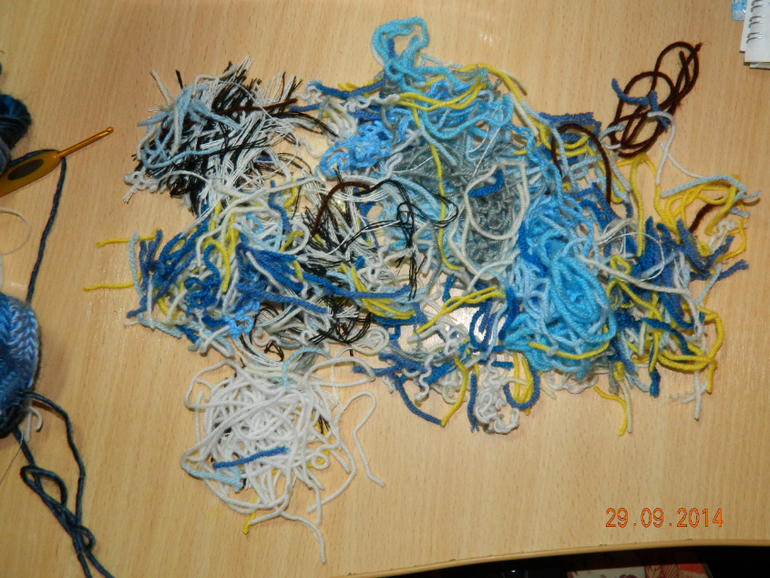 Голубых ниточек не хватило, пришлось собирать из разных оттенков