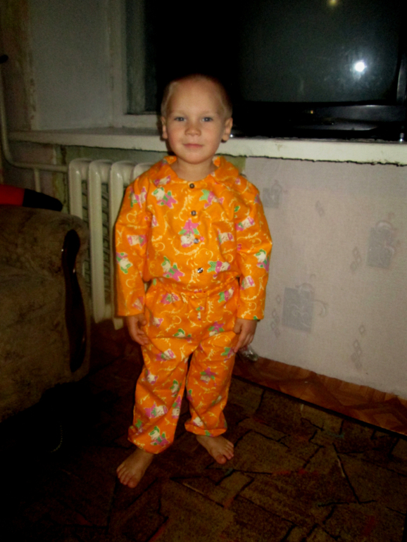 а это первая моя сшитая ребенку пижамка. Байковая пижама из еще советской байки нежной-нежной. Воротник слишком широкий получился, т.к. я выкройку переснимала с рубашки, не распарывая, просто прикладывала. Соответственно погрешность большая, теперь зареклась без выкроек шить) ну я планирую перешить, слишком раздражает меня то что ворот широкий)