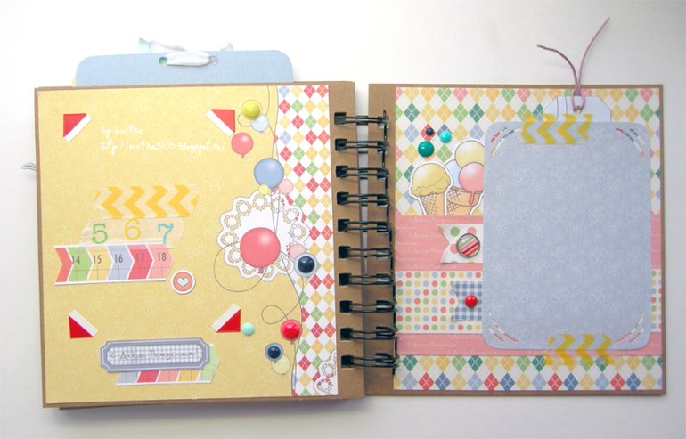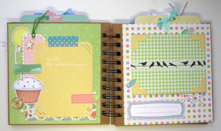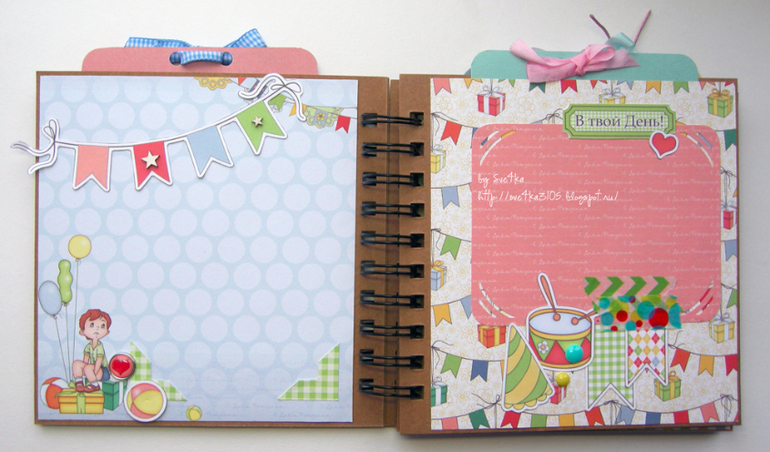 СкрапбукингЗдравствуйте! Из бумаги Scrapberry's сделался миниальбом "С Днем рождения". Можно вставлять фото 7,5х10 и 9х13. Альбомчик станет хорошим подарком имениннику
