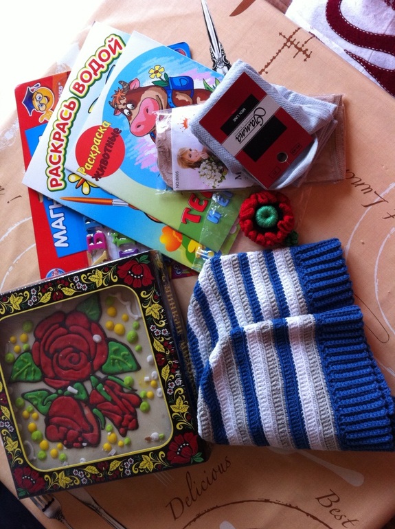 А вот и мы получили посылочку от Наташи Василена с шапочками для моих мальчуганов, а там еще и приятности. Спасибо тебе большое, Наташ, шапочки очень крутые, такие вроде и мальчуковые, но мягонькие и аккуратненькие.