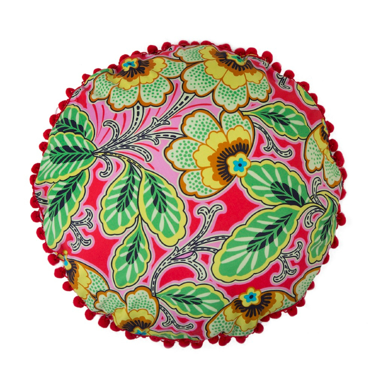 Декор, витражи.Декоративные подушки коллекции Floral от "ЛоскутКлаб" изготовлены из дизайнерской ткани от Эми Батлер (Amy Butler, США). Оригинальный цветочный принт сделает интерьер ярким и стильным. Качественный хлопок приятен для прикосновений, экологичен, гиппоаллергенен и безопасен для самой чувствительной кожи. Круглые подушки нарядно окантованы помпонами для создания в доме праздничного настроения.