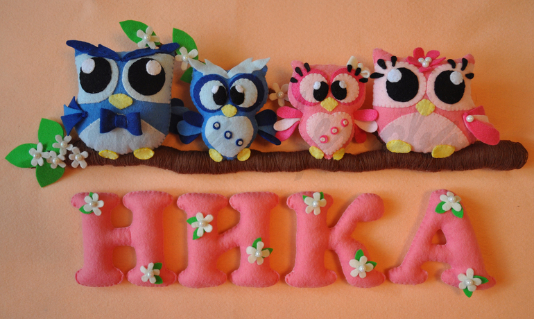 от изобилия глаз птичек начинает рябить в глазах)) и на этом фоне восприятие нежного имени "Ника" просто теряется, всё что на веточке выше кажется тяжёлым и громоздким на взгляд.... извиняюсь на критику конечно)) А так видно что старались, всё аккуратно и красиво!
