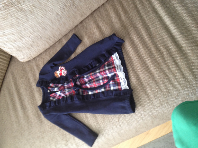 Красивое платье. Спинка и рукава из трикотажа, полочка двойная — из того же трикотажа и ткани в клетку. Можно взять выкройку трикотажной туники на нужный возраст, промерять выкройку, ориентируясь главным образом на ОГ. Какой у Вас опыт в шитье, а то так трудно советовать?