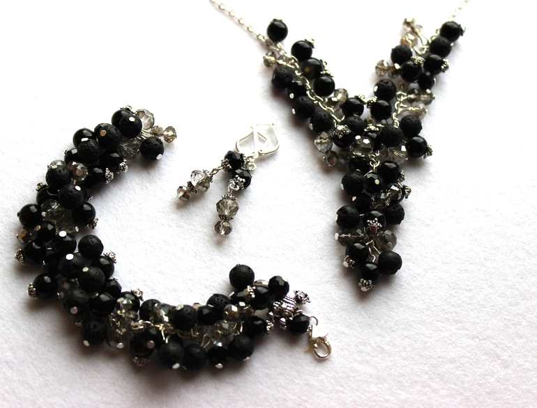 Бижутерия для слингомам. Слингобусы. Грызунки.Комплект украшений включает колье, серьги и браслет. Классический черный всегда благороден и к месту. Фото конечно не передаст блеск граней чешских бусин. Украшения за счет них играют и выглядят празднично. В итоге я постаралась передать хотя бы фактуру и объем.