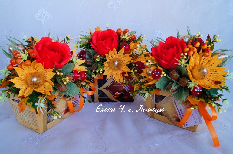 Это был заказ из разряда - "Когда нужно? - "Вчера))" Народ опомнился, не успела добавить фото вчерашних коробочек, как тут же нашлись вспомнившие о подарках. Согласилась с доплатой за срочность, так как не собиралась больше ничего брать, хотела для сына в школу сделать что то учителю. В общем, я как тот сапожник без сапог. Всю ночь с заказом не спала, а с утра побежала сертификат в подарок купила, ленточкой в открытке перетянула и дите в школу отправила, учителя поздравлять. А с шоколадками тоже дама схитрила, вначале заказала одну, очень просила сделать, ну приняла заказ на шоколадку, думаю все равно коробки делать, так она мне вечером написала попросила сделать еще две. Короче, это я не жалуюсь, мораль сей басни о безответственных заказчиках, которые тянут до последнего и о моей жадности, которая не дала мне этот заказ отклонить. Фото под катом.