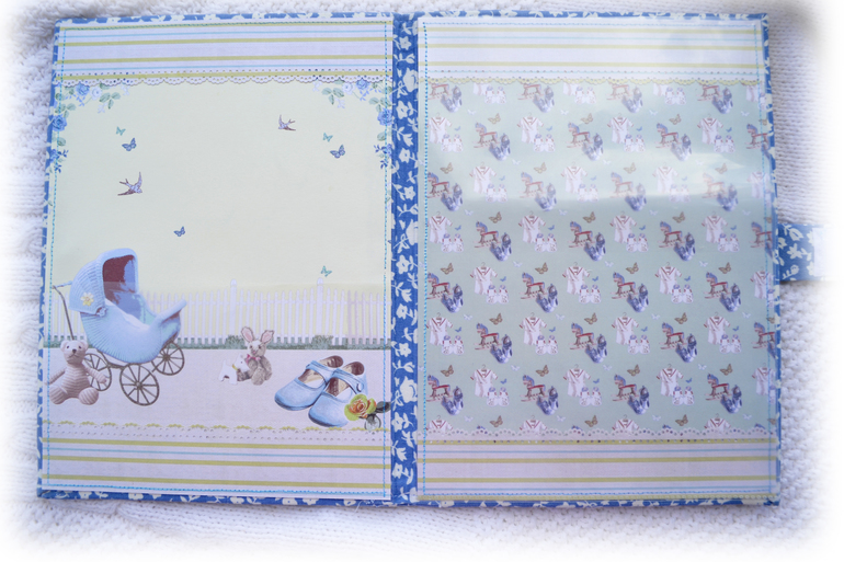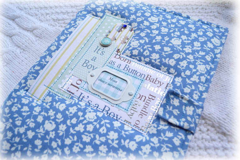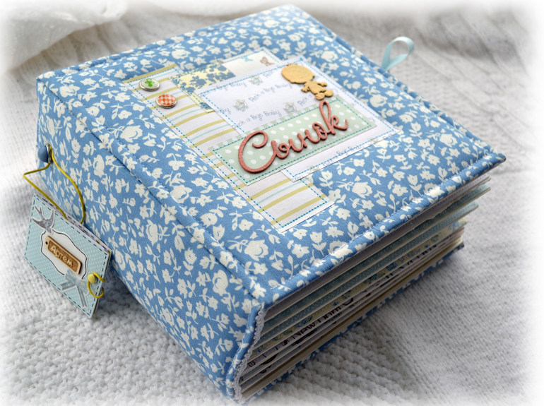 На обложке маленькая...нет, книжечка это сильно сказано...больше тетрадочка))) В ней классный юморной стишок про рождение мальчика. Уж очень мне хотелось куда-нибудь влепить этот стих, но он очень большой и на странички никак не клеился, вот и я придумала такой выход)))
