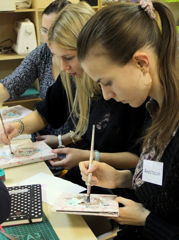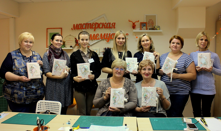 Встреча традиционно проходила на территории мастерской Мемуарис - рай для скрапмастериц:)