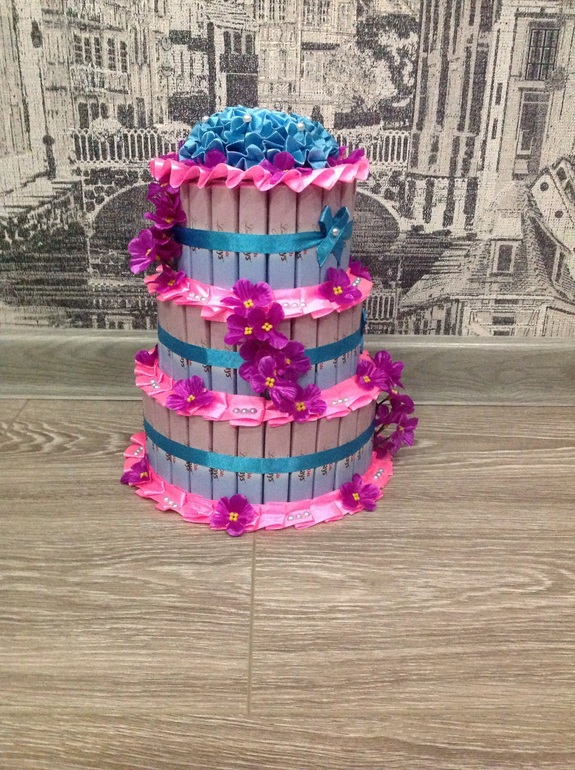 Кружева пробовала белые как то теряется среди конфет,а вот на счёт цветов надо попробовать!спасибо