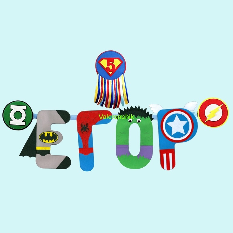Внезапно мама осознала, что ребенку уже 5 лет будет, а именной гирляндой он так и не обзавелся. А т.к. малыш совсем уже взрослый-серьезный, то и буквы для гирлянды должны соответствовать!)