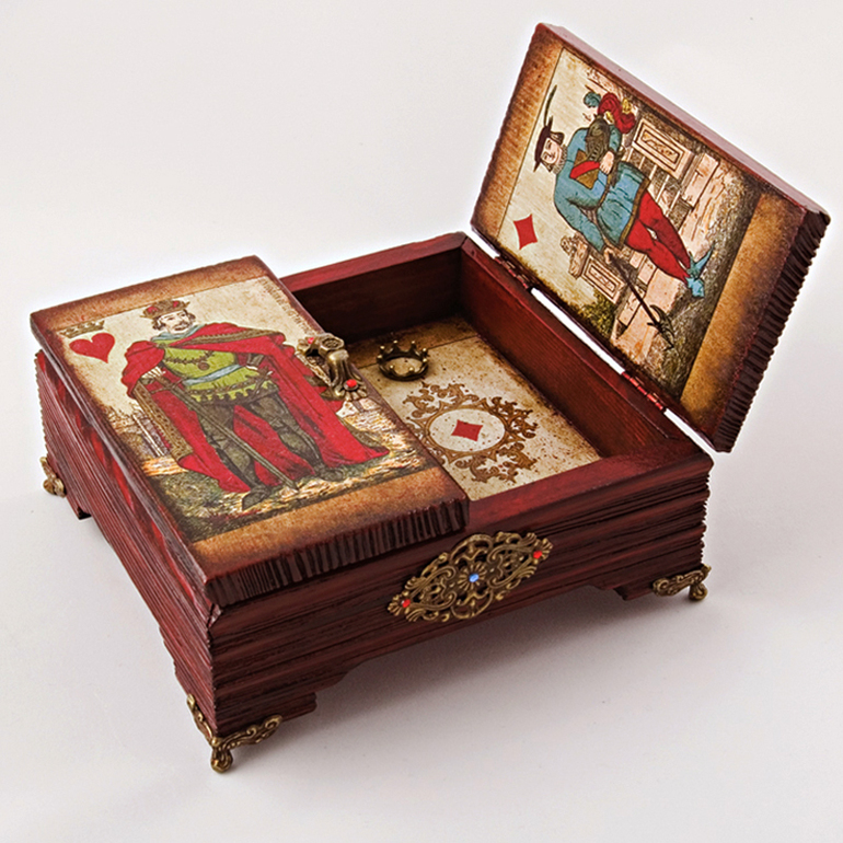 ДекупажДобрый день! Шкатулочка для карт. Подойдет под две колоды карт или может быть использована под визитки и разные мелочи.