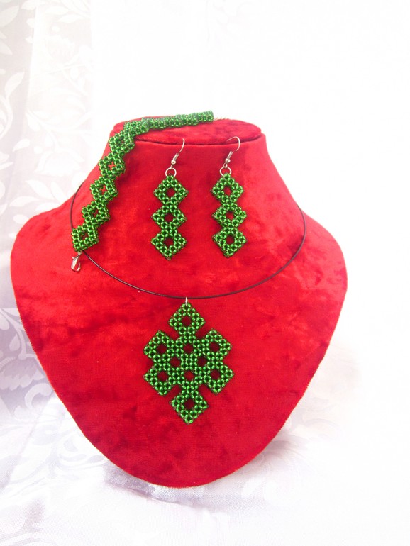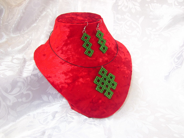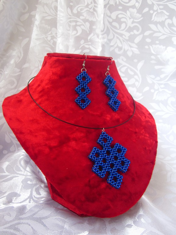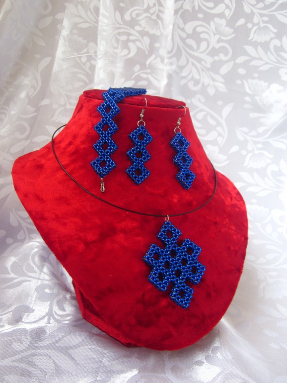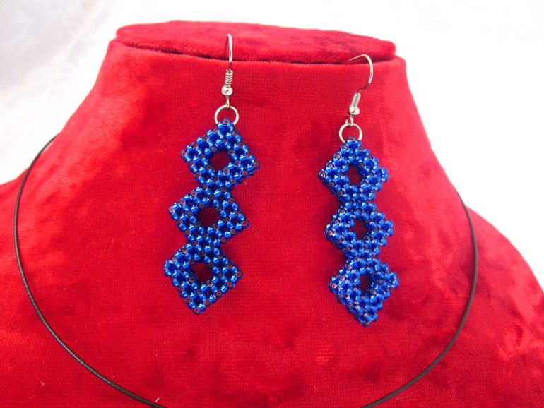 Бисер. Бисероплетение. Украшения из бисера.Мой муж раньше работал на фирме, которая занимается продажами различных инструментов, а также хозяйственных товаров. Офис фирмы находился в одном городе, а мы живем в другом(расстояние между ними около 150 км). Кроме моего мужа, в нашем городе живут еще 4 человека, которые работали в той же фирме. И вот, перед 8 марта они поговорили и решили сделать подарки девушкам, которые работают на офисе(их всего две). Тут встал самый главный вопрос - а что дарить. Мой муж рассказал что я делаю разные украшения из бисера, и что я смогу сделать что то интересное. Я конечно же согласилась взяться за работу. Долго не могла определиться что же все таки сделать(наверное каждый, кто делал украшение для совершенно незнакомого человека меня поймет). Единственное что мне сказали - они такого же возраста что и ты, и примерно такого же телосложения, одна девочка очень любит синий цвет, а другая зеленый. И все. Так как я недавно научилась плести квадратный жгут, то и подарки изготовила в этой же технике.Получились такие вот комплекты - кулон, браслет и сережки.