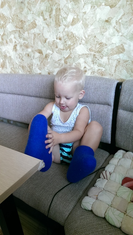Светлана сначала обучалась у меня по курсу "Валяем детские валеночки с нуля и без колодок" и сваляла замечательные валеночки своему сынуле!