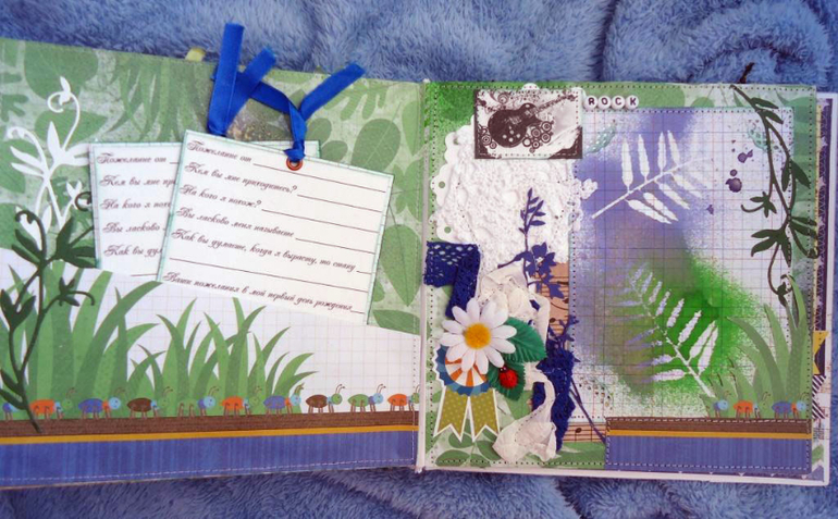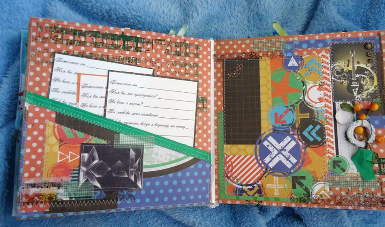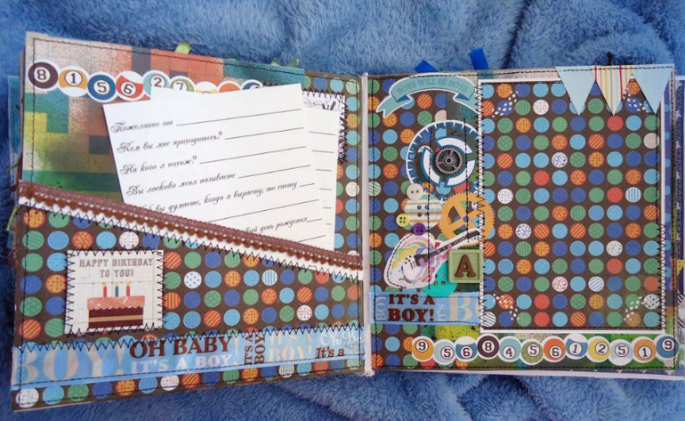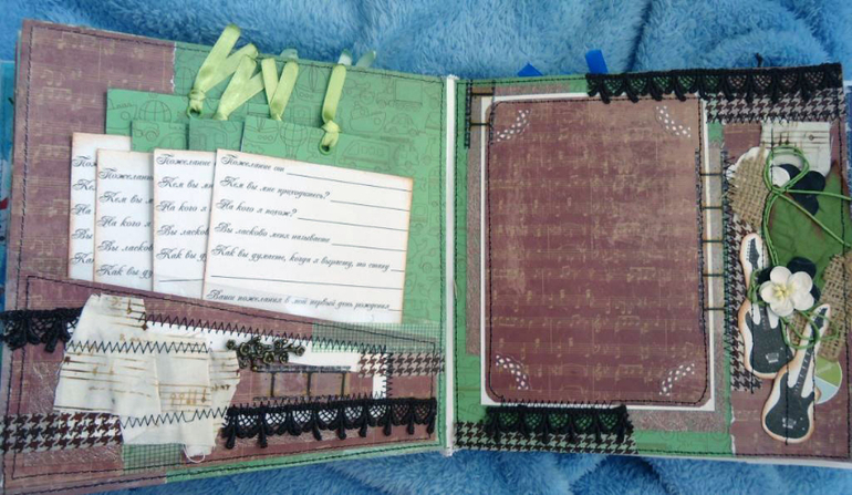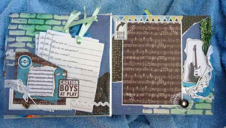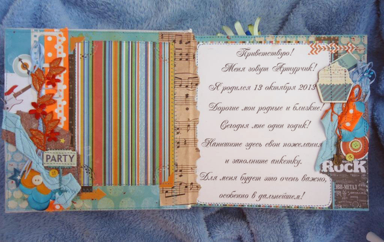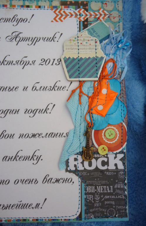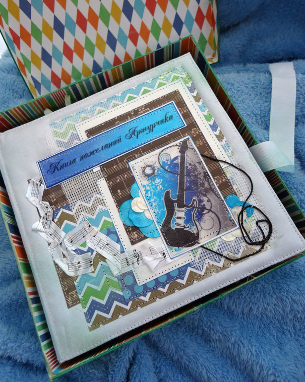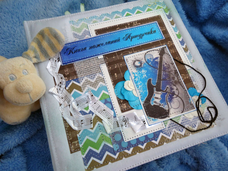 Скрапбукингно не просто попросили сделать книгу пожеланий,а чтоб с элементами рок-музыки..ну люблю я ооч. такие необычные заказы, и ребенок вот такой необычный попался,только годик будет через неделю, а уже есть свои пристрастия..да я и сама люблю выборочно эту музыку..так что в рез-тате вот что получилось...