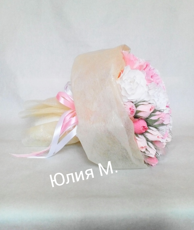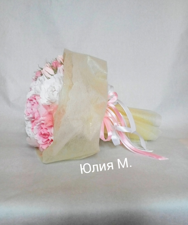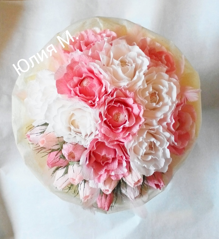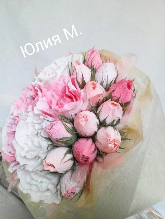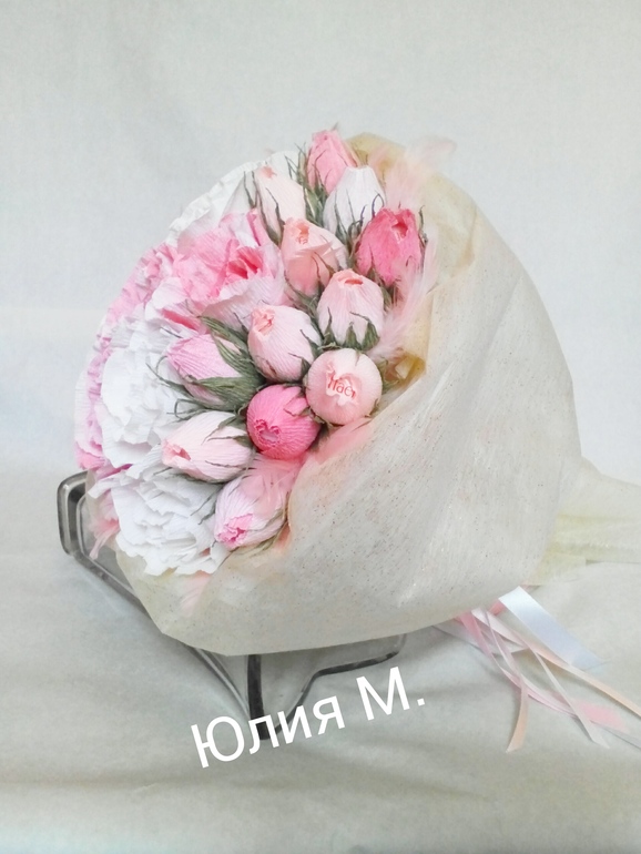 Юленька, привет! С зеленью как-то по-привычнее смотрится наверно, а так замечательный букет, очень интересно, он и правда зефирный