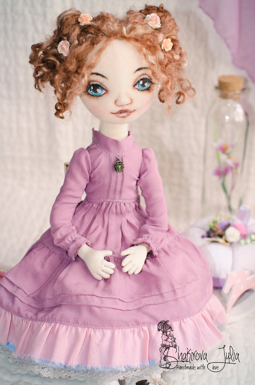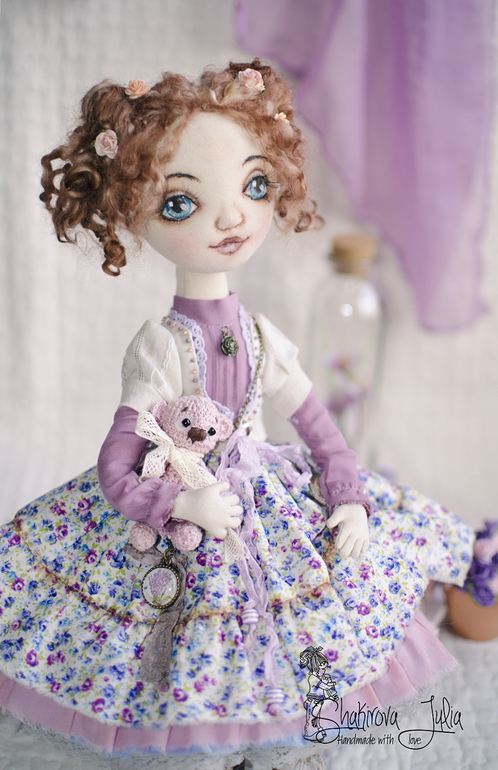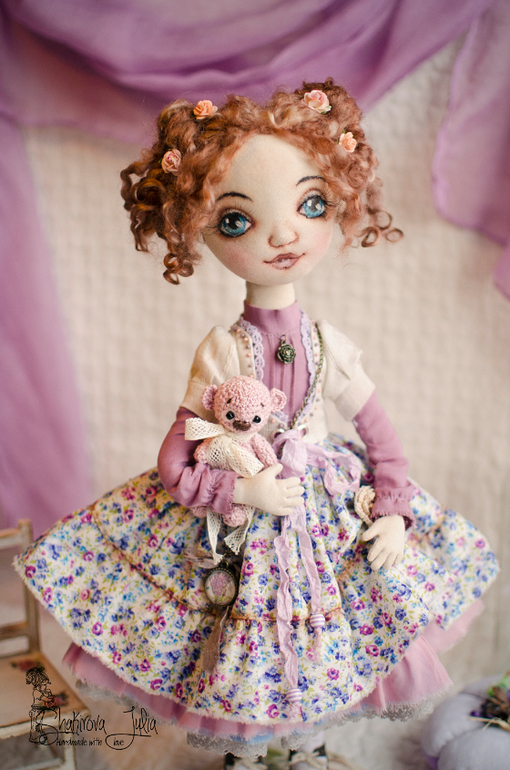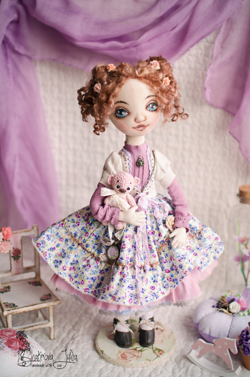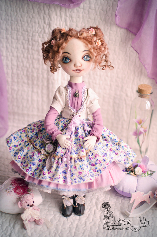 Юля, очень нежная куколка!!!!А я с вопросом посоветуй,ты куколке лицо делаешь из какой ткани? чем и как набиваешь..у меня иногда не получается сделать ровное личико....постоянно переделываю...у тебя оно такое гладкое и ровное..в чем секрет?