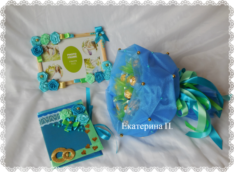 Катя бирюзовый набор очень понравился! С таким на свадьбе круто появиться! Букеты с органзы у тебя вообще пышные красавцы такие!