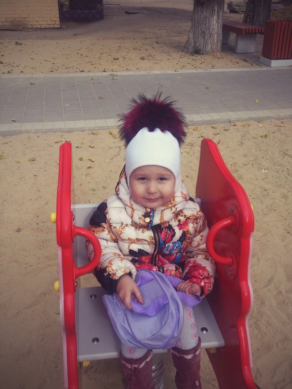 Сапожник без сапог! Это правда!! Кинулись гулять а у нас шапки нет!!! Вот я и решила.. Взяла самый большой помпонище и вот что вышло!!!! По моему здорово))))