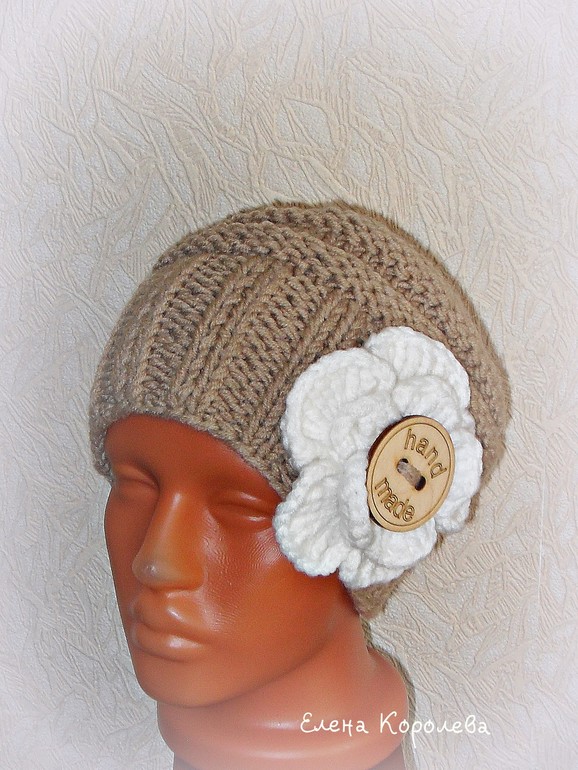 шапка с цветком связана из Ализе ланаголд 50 шерсть/50 акрил в 2 нитки, а шапуля с косой — чистая шерсть от Пехорки.