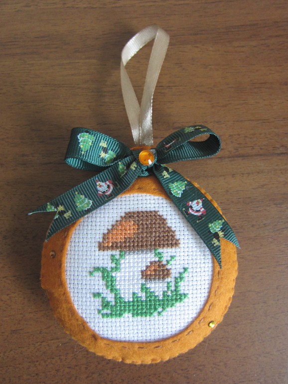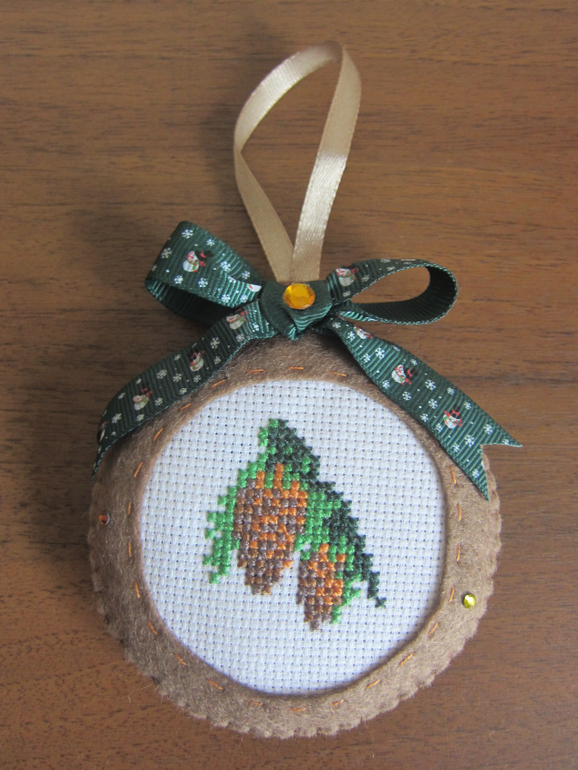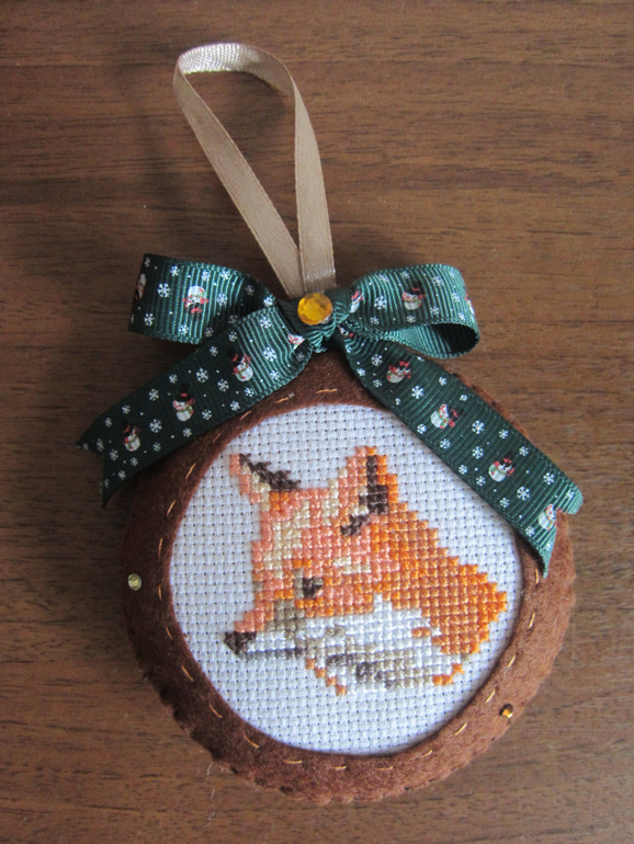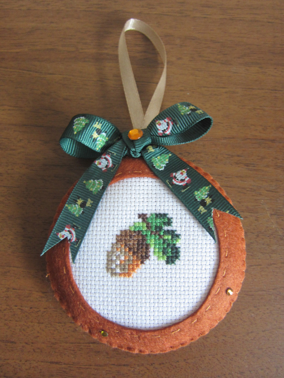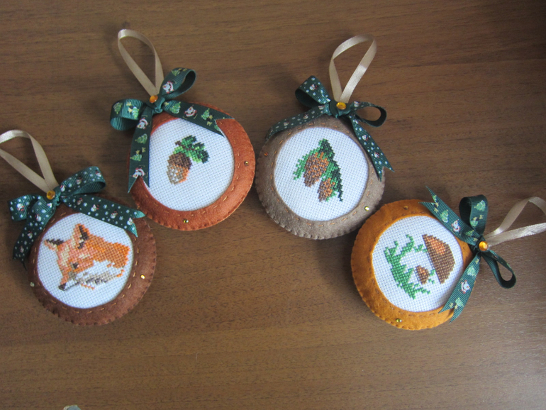 Набор елочных игрушек "Лесной".Материалы: фетр, мулине, канва, репсовые и атласные ленты, стразы.Вышивка крестом.