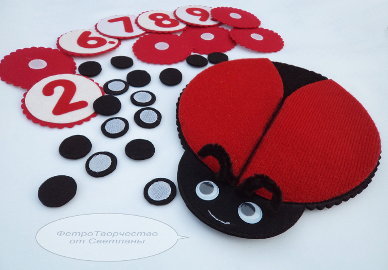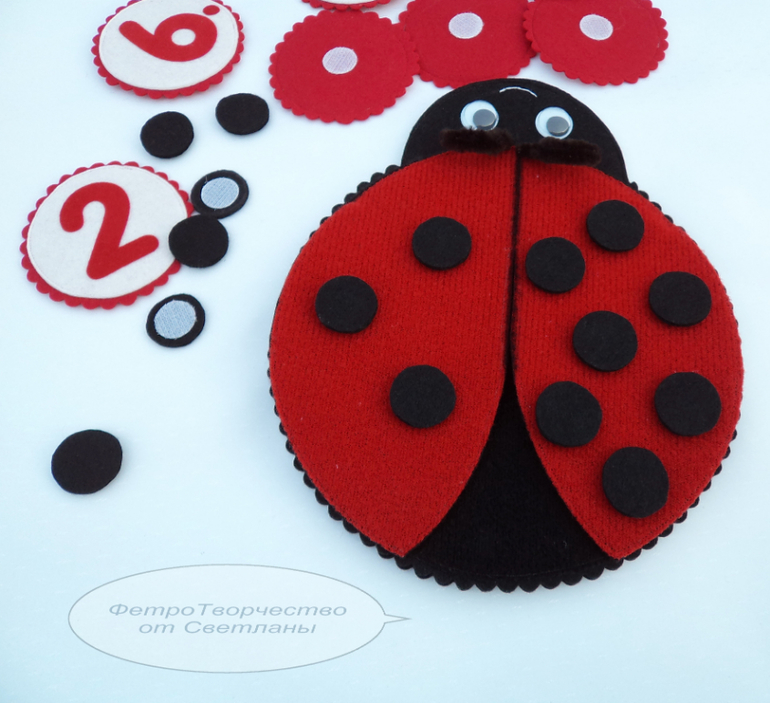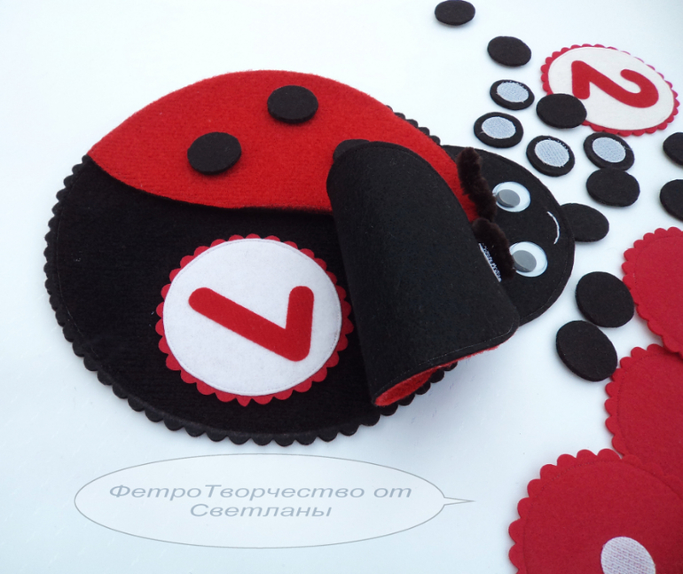 Стартуем .Крылышки у божьи коровки ( далее БК) подняла и спрятала задание . Теперь нужно его выполнить: соответствующее количество точек закрепить на спинку.