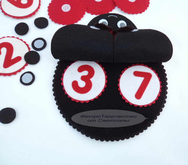Столкнулась я с маленькой проблемой : куда складывать наши развивашки ?Хочется эстетики и порядка во всем. Пока я не научилась делать коробочки ( но уже иду в этом направлении) ,то сшила БК двойное брюшко с кармашком .Вот туда и убираем после игры все цифры и точки со спинки.Закрывается карман на магнитики.