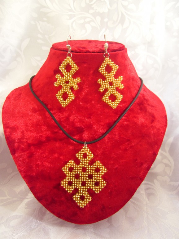 П.С. Мама, когда увидела этот комплект, сразу же примерила сережки и попросила "Хочу сережки такой же формы, но только поменьше". Вот что у меня получилось