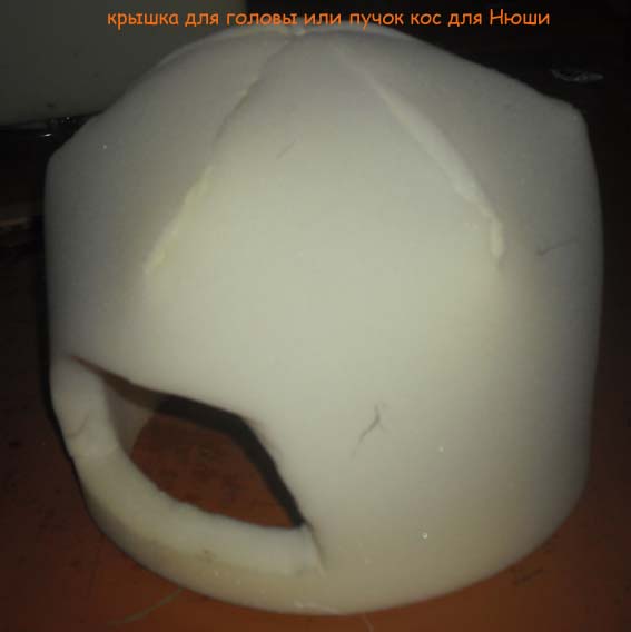 лист поролона свёрнут в трубу и склеен по шву, верхушка сделана как на фото ниже