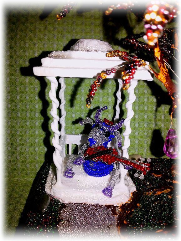 А тут дочка решила схулиганить и посадила в беседку мою скрипачку))) А что, ничего получилось!