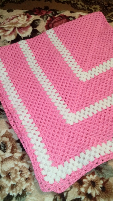 Я вязала пледы на выписку 1м на м, да полосу делать розовую, а потом белую обвязку или розовую обвязку, но тогда белым можно обвязать обвязку одним рядочком, чтобы ее выделить