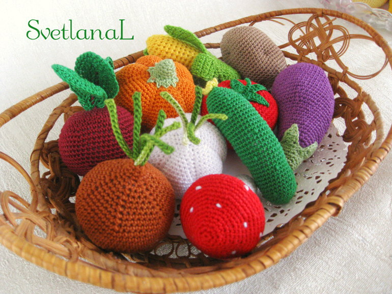 Игрушечный мир - животныеОчень люблю я вязать сладости, овощи-фрукты...и каждый раз как первый...ни схем ни шаблонов...просто вяжу с любовью и все...вяжу их уже больше пяти лет и не надоедает...порой некогда начать, но если уж начала заказ, то не оторваться...