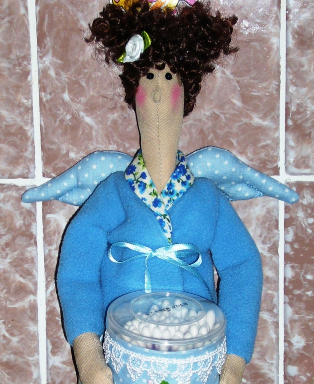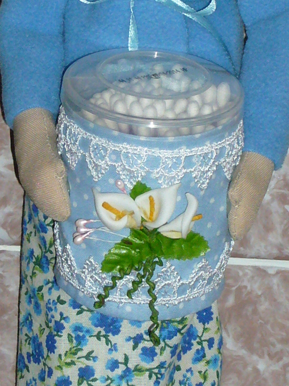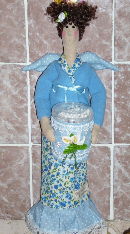 Я снова с новой куколкой-хранительницей ватных палочек и дисков))),только из под иголочки. Сшилась на обмен. Остальное все как обычно:петелька для подвеса,туба на двух пуговичках,в голубых тонах на этот раз.Ох и нравится мне их шить,так бы шила и шила еще много много раз)))). Жду одобрения,понравится ли.....
