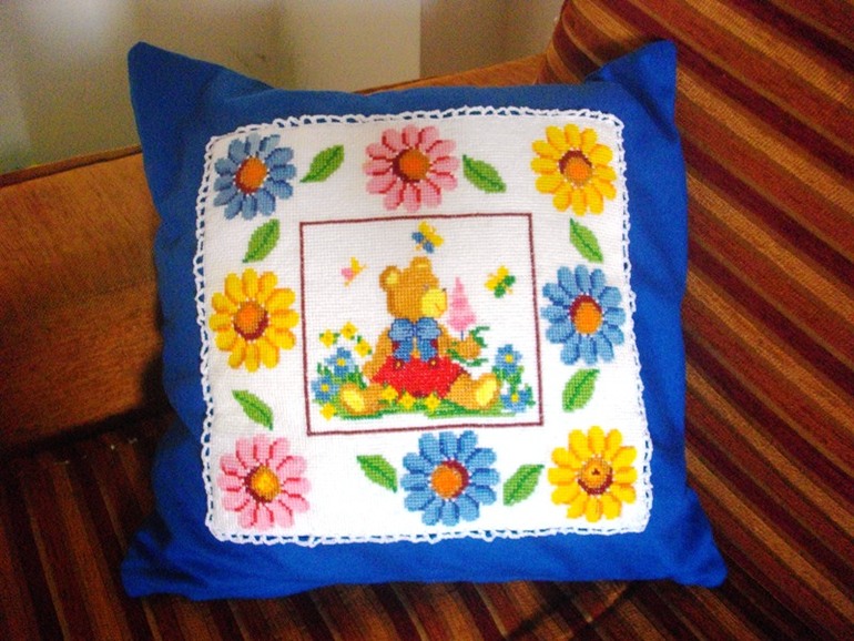 А вышивать я начала не так давно, всерго лет 5 назад))) Подружка приохотила))) Вот моя первяя работа - все крестики кто в лес, кто по дрова, но особенно умиляет старательно зашитый белый фон)))