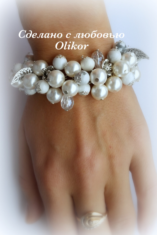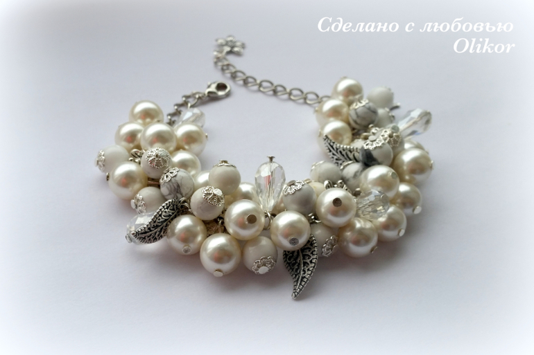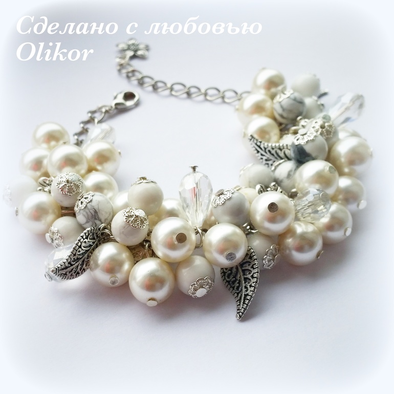 Бижутерия для слингомам. Слингобусы. Грызунки.Свеженький браслетик на цепочке с жемчугом и кахолонгом. Очень мне нравится сочетание жемчуга с натуральными камнями - украшение получается более демократичным и подходит не только к классике.