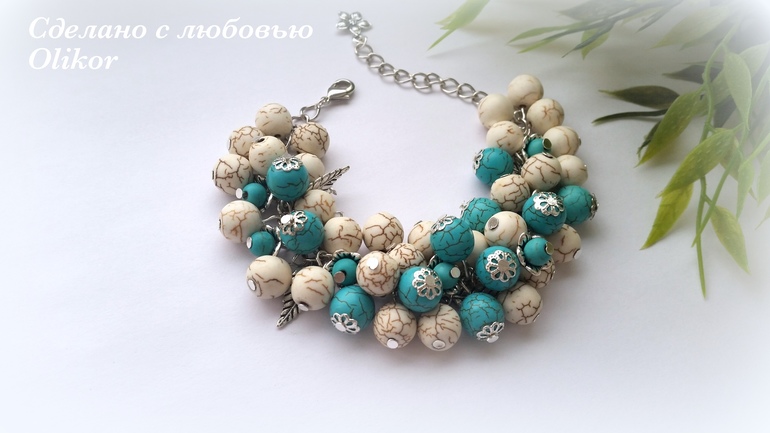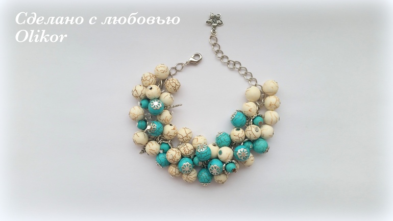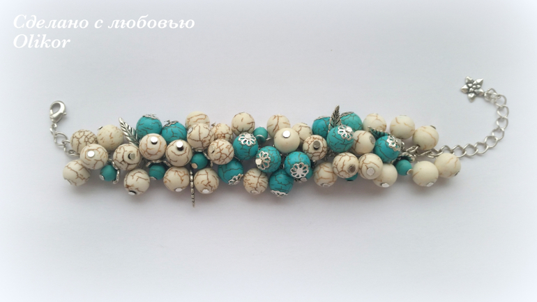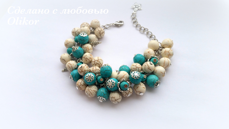 Браслет из молочного и бирюзового говлита