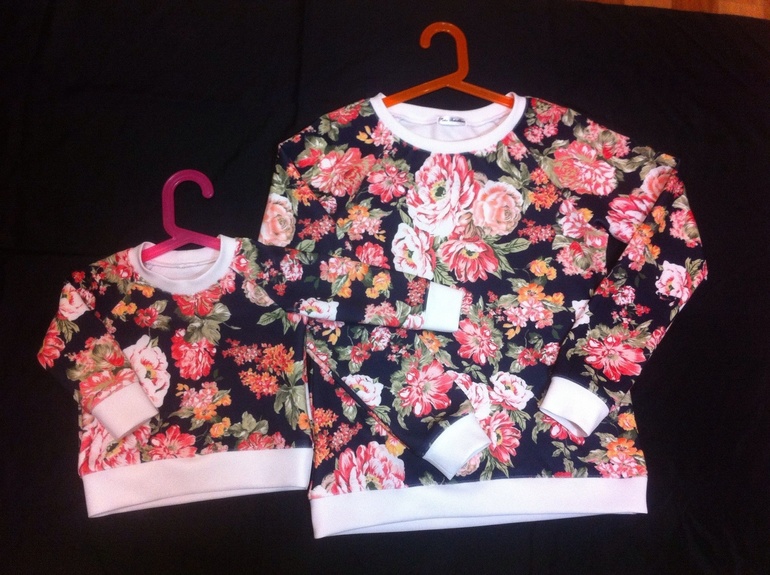 Шитье одежды, выкройки, ремонт одежды, шторы, швейные машины (уже приобретенные)Кроме платьев, юбок и сарафанов в нашей мастерской еще шьются вот такие милые свитшоты. Это заказ для ббшки Дарьи и ее маленькой доченьки.