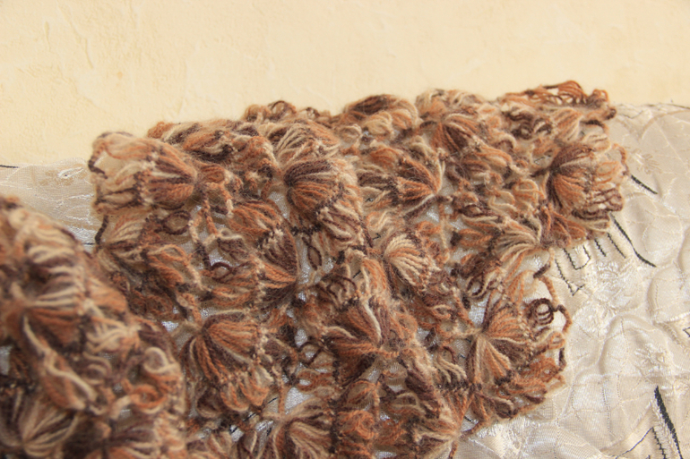 Давно смотрела на красоту, ею связанную, даже вилку купила весной) .Руки дошли и я решила показать шарфик, который связала для себя. Первый блин комом, как говорится. В процессе вязки я уже отметила свои недочеты, выделила некоторые нюансы, конкретно по этому изделию, в цепочках мне следовало вязать не 8, а 9 или даже 10 петель вязать, ибо вязка получилась все же стянутой, но это шарф не испортило в данном случае, а даже сделало еще ажурнее, что мне и требовалось: