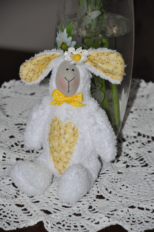 шилась очень сложно!!! получилась кривовата и косовата, все из-за ужасно сыплющегося материала, который ужасно капризный... но все равно какая-то милая и очень-очень мягкая!