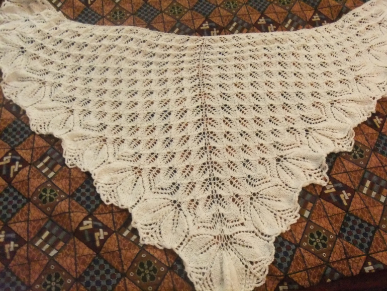 Можно вставлю 5 коп ) Я делаю так — шаль довязала, постирала в теплой воде с шампунем и натягиваю на диван, делаю это так растягиваю на желаемый размер и на сколько дается сама шаль, по периметру очень часто накалываю иголками, оставляю сушить на 12 часов (мне так удобно, утром натянула, вечером с работы пришла) и я ее не снимаю, а отпариваю утюгом, сначала паром на высоте 10-15 см, а потом уже на самой шали (не гладим, а поставили утюг и подняли, т.е. только вверх-вниз ходит утюг), после минут 5 лежит и снимаю блокировку