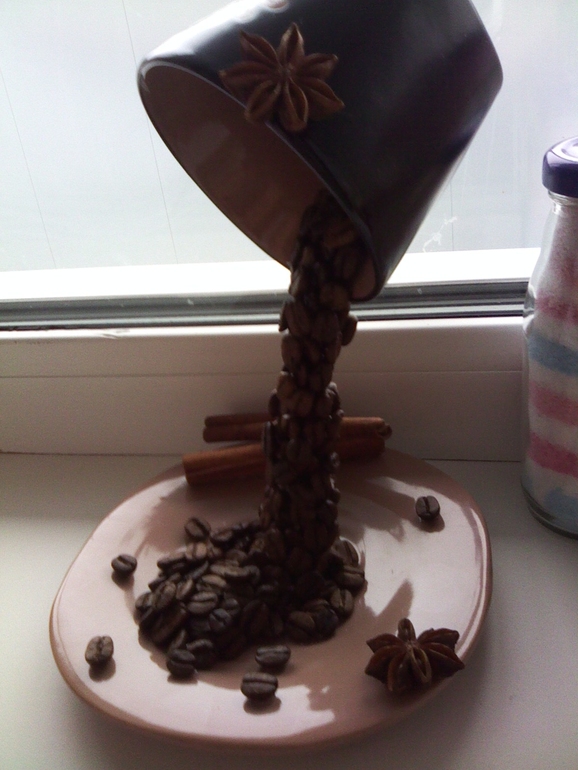 Еще украсили кофейную пару. Но здесь в основном я делала, т.к. работа с горячим пистолетом.