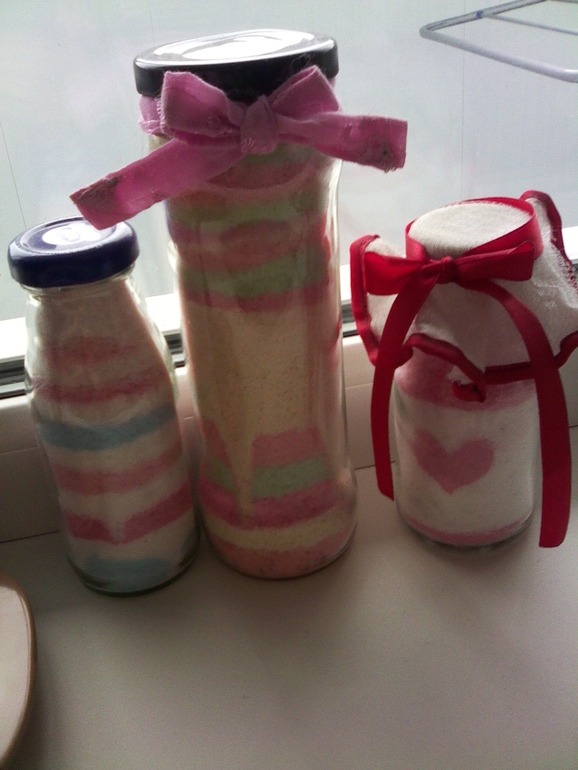 И еще на окне под руку попались Кристинины поделки) Это она делала в том году, в 9 классе в школе. Мелом разукрашивала соль.