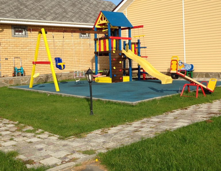 Какой позитив от обновленного комплекса!:) очень ярко и красиво!Пс: а сайдинг на домике справа тоже покрашен или он так "заиграл" цветом на солнышке?