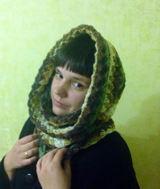 А для снуда брала Alize Lana Gold, состав 49% шерсть, 51% акрил, полотно достаточно плотное, поэтому снудик получился теплым, как раз для холодной осени
