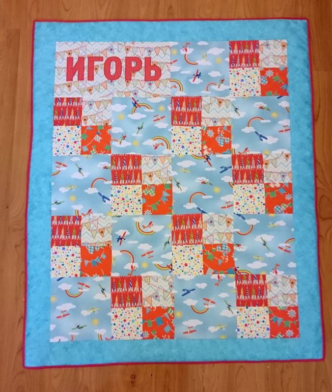 Очень красиво! Если не сложно, подскажите, как Вы пришили буквы , а точнее на первый слой или уже на собранное одеяло. И еще как простегивали места с буквами . Спасибо