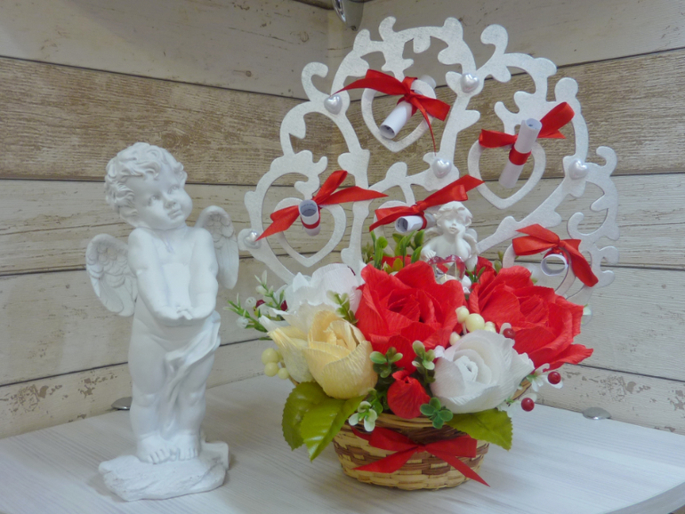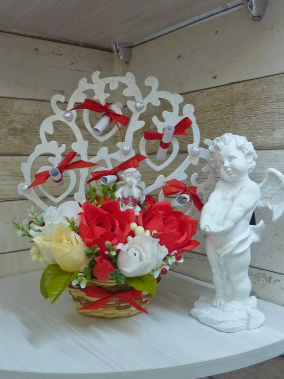 Ирина, композиция мне понравилась! Тема любви прослеживается отлично, а вот "жемчужности" не хватает, на мой взгляд. Может, вместо ангелочка сделать жемчужный шарик типа такого, только белый...