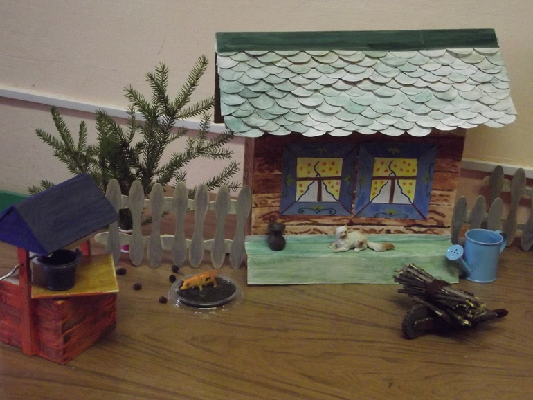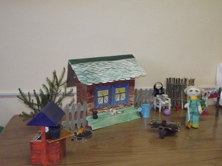 цель выставки - изображение страны, в которой мама мечтает побывать, самая интересная история из маминых воспоминаний об отпуске или "Каким я вижу путешествие для мамы". вот у нас просто деревенский домик.... может ещё круглый стол во двор со скатертью?!