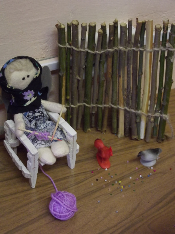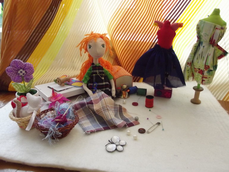 Эта ещё одна работа, пока без названия. Хотим создать образ девочки-швеи, которая шьет подарок маме. Здесь создавала и фотографировала полностью сама ученица, я просматривала фото дома. Надо переделывать композицию и что-то надо ещё....