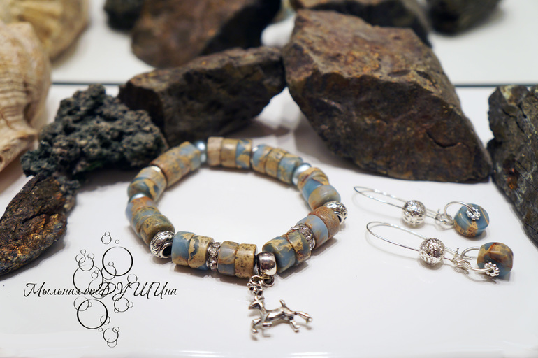 Бижутерия для слингомам. Слингобусы. Грызунки.1. Комплект украшений из натурального варисцита. Фурнитура под серебро